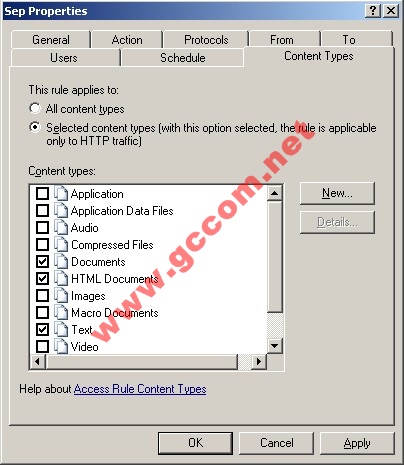 Tiếp theo ta sẽ Modify Rule Sep sao cho các User trong Group Sep được phép truy cập mọi trang Web (đã làm lúc nãy) nhưng không được xem ảnh, video, file... mà chỉ được xem văn bản Text thuần túy mà thôi.