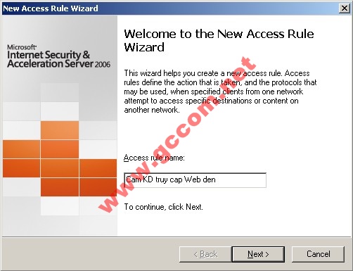 Tạo một Access Rule mới với tên là Cam KD truy cap Web den