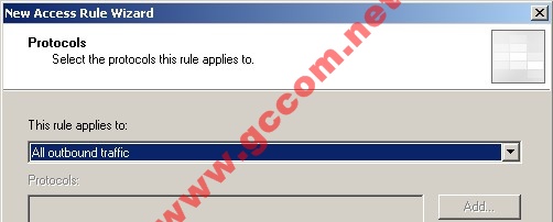 Tại cửa sổ Protocol ta không chọn All outbound traffic nữa mà chỉ mở duy nhất một Port 53 để truy vấn DNS mà thôi nên ta giữ nguyên chế độ Selected protocols chọn Add