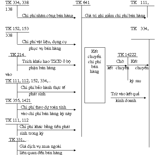 * Để tập hợp kết chuyển chi phí bán hàng thực tế phát sinh trong kỳ, kế toán sử dụng TK641- Chi phí bán hàng.