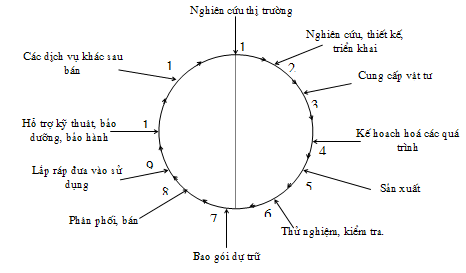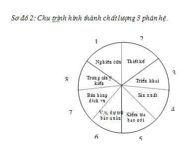 Trong sản xuất kinh doanh, mục đích lớn nhất đó là phải sản xuất ra những hàng hoá đáp ứng được nhu cầu của người tiêu dùng. Mà điều cốt lõi là khách hàng luôn muốn tìm cho mình một sản phẩm có chất lượng cao giá cả hợp lý đây là một điều không dễ dàng gì đối với các nhà cung ứng. Để tạo ra một sản phẩm có chất lượng không chỉ đơn thuần quan tâm đến một vài công đoạn của việc sản xuất ra sản phẩm mà bất cứ một sản phẩm nào cũng được hoàn thành theo một trình tự nhất định với nhiều nghiệp vụ khác nhau mà nếu một sự yếu kém bất kỳ nào trong trình tự ấy sẽ trực tiếp làm ảnh hưởng đến chất lượng sản phẩm. Điều này đã được các học giả phân tích một cách chi tiết các công đoạn phải được quản lý, thực hiện theo một chu trình khép kín, vì sản xuất bắt nguồn từ nhu cầu thị trường và cũng quay trở về thị trường để kiểm chứng và tất nhiên chất lượng sản phẩm cũng được hình thành trong chu trình đó. Ta có thể minh hoạ các giai đoạn trong 3 phân hệ: Nghiên cứu, thiết kế, sản xuất- tiêu dùng.