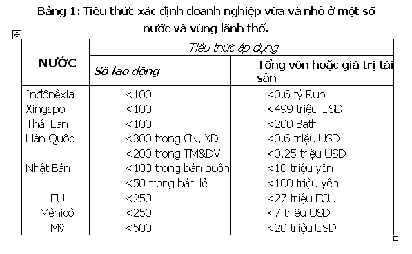 Thực tế trên thế giới, các nước có quan niệm rất khác nhau về doanh nghiệp vừa và nhỏ, nguyên nhân cơ bản dẫn đến sự khác nhau này tiêu thức dùng để phân loại quy mô doanh nghiệp khác nhau. Tuy nhiên trong hàng loạt các tiêu thức phân loại đó có hai tiêu thức được sử dụng ở phần lớn các nước là quy mô vốn và số lượng lao động.