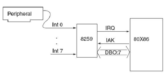 Trong thực tế, hầu hết các hệ thống đều sát nhập thêm một thiết bị ngoại vi đặc biệt được gọi là bộđiều khiển ngắt Interrupt Controller để quản lý các công việc chi tiết chẳng hạn như gửi chỉ số của véctơ ngắt lên bus dữ liệu vào đúng thời điểm cần thiết. Kiến trúc PC bao gồm 2 bộ điều khiển ngắt 8259, mỗi một bộ có thể quản lý được 8 ngắt. Mỗi một bộ 8259 có một cơ chế quản lý ngắt theo kiểu ưu tiên. Do đó, một thiết bị quan trọng sẽ được ưu tiên hơn thiết bị khác ít quan trọng hơn.