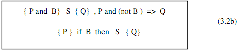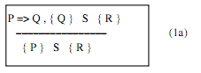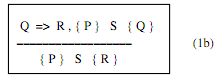 các trạng thái thoả P là tập con của các tập trạng thái thoả Q ) và mỗi trạng thái thoả Q đều đảm bảo trạng thái sau khi thi hành S (với giả định S dừng) thoả R thì mỗi trạng thái thoả P đều đảm bảo trạng thái sau khi thi hành S (với giả định S dừng) thoả