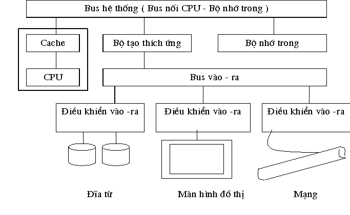 - Bộ phận vào - ra: đây là bộ phận xuất nhập thông tin, bộ phận này thực hiện sự giao tiếp giữa máy tính và người dùng hay giữa các máy tính trong hệ thống mạng (đối với các máy tính được kết nối thành một hệ thống mạng). Các bộ phận xuất nhập thường gặp là: bộ lưu trữ ngoài, màn hình, máy in, bàn phím, chuột, máy quét ảnh, các giao diện mạng cục bộ hay mạng diện rộng...Bộ tạo thích ứng là một vi mạch tổng hợp (chipset) kết nối giữa các hệ thống bus có các tốc độ dữ liệu khác nhau.