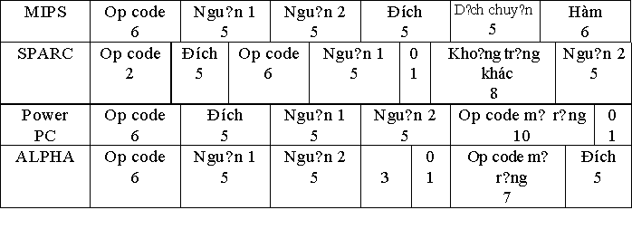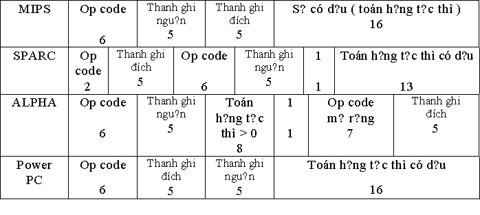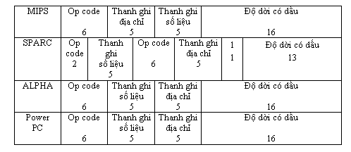 Hình II.7 : Dạng lệnh thâm nhập bộ nhớ trong của vài kiến trúc RISC