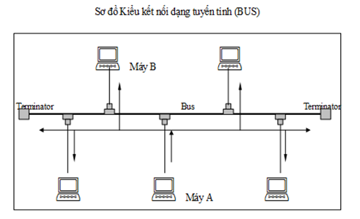 - Tất cả các trạm đều dùng chung một đường truyền chính (Bus) được giới hạn bởi hai đầu nối (terminator).
