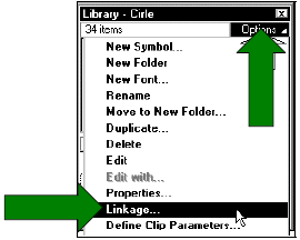• Nhấp phải chuột (trong Windows) hoặc nhấp Control (trong Macintosh) tại một mục Item trong cửa sổ Library và chọn lệnh Linkage trong trình đơn ngữ cảnh.