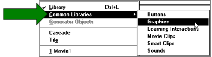 Ngoài ra bạn cũng có thể tạo ra các thư viện tạm thời trong chương trình Flash mà sau đó bạn có thể dùng chúng trong bất kỳ đoạn phim nào bạn tạo ra. Tất cả những loại thư viện này được hiển thị trong trình đơn phụ Window > Common Libraries.