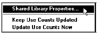 + Trong cửa sổ Library, chọn lệnh Shared Library Properties từ trong trình đơn Library Options.