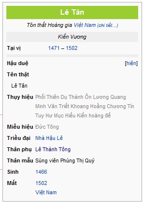 - Cẩm Giang Vương Lê Sùng, bị Lê Uy Mục giết năm 1509, sau truy tôn là Lê Minh Tông.