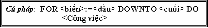 Ý nghĩa tương tự như dạng 1, nhưng sau mỗi lần lặp thì biến giảm đi một đơn vị (biến:=PRED(biến)) .