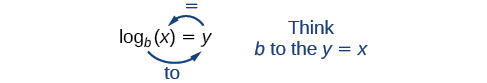 We read a logarithmic expression as, “The logarithm with baseofis equal to” or, simplified, “log baseofis” We can also say, “raised to the power ofis” because logs are exponents. For example, the base 2 logarithm of 32 is 5, because 5 is the exponent we must apply to 2 to get 32. Since we can writeWe read this as “log base 2 of 32 is 5.”