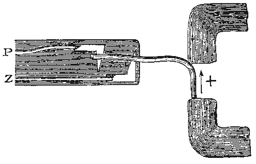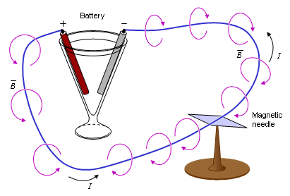 Mối quan hệ giữa điện và từ được phát hiện vào năm 1819 bởi Hans Christian Örsted (người Đan Mạch, 1977-1851). Örsted tiến hành thử nghiệm đầu tiên của mình trong suốt quá trình học tại Đại học Copenhaghen. Cho một dòng điện chạy trong dây dẫn phía trên một cái kim nhiễm từ tạo ra lực đẩy kim di chuyển theo hướng vuông góc với dây dẫn. Đổi chiều dòng điện thì chiều của kim cũng bị đổi ngược lại. (Kim nam châm, ví dụ la bàn, được phát minh tại Trung Quốc khoảng 100 năm sau Công nguyên để dò từ trường).