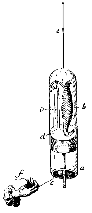 Trong một số thí nghiệm tương tự, Swammerdam kích thích dây thần kinh vận dộng bằng cách nén nó. Trên thực tế, trong thí nghiệm này kích thích đạt được bằng cách kéo dây thần kinh vận động bằng một sợi dây (c) làm bằng bạc tỳ vào với một cái vòng (d) làm bằng đồng. Dựa trên các định luật về điện hóa, hai kim loại không giống nhau trong thí nghiệm này được nhúng vào chất điện phân cung cấp bởi mô, là nguồn gốc của lực điện động (emf) và liên quan đến dòng điện. Dòng điện chảy qua kim loại và mô, và phản ứng với kích thích (kích hoạt) của thần kinh trong mẫu mô. Các dây thần kinh, một khi đã kích hoạt, tạo ra một dòng điện của chính nó. Đó là nguồn gốc của sinh học, được điều khiển bởi các nguồn trong màng các dây thần kinh và cơ, và là khác biệt với các dòng kích thích kể trên. Các vùng hoạt động của sự lan truyền hưng phấn từ thần kinh đến cơ ngay lập tức gây ra sự co cơ. Đặc tính điện của thần kinh và cơ hình thành nên chủ đề “điện sinh học” là chủ đề trung tâm của bài luận này.