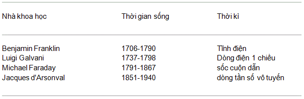 Áp dụng hệ thống của thiết bị điện y học cho điều trị bắt đầu vào những năm 1700. Có thể nhận ra bốn giai đoạn lịch sử khác nhau của kích thích điện từ, mỗi thời kì dựa trên một dạng xác định hay nguồn gốc của điện. Các thời kì đó được đặt tên theo Benjamin Franklin (người Mỹ, 1706-1790), Luigi Galvani (người Ý, 1737-1798), Micheal Faraday (người Anh, 1791-1867) và Jacques Arsène d’Arsonval (người Pháp, 1851-1940. Những người đó đã phát hiện ra hoặc khởi xướng các loại điện khác nhau : tĩnh điện, điện một chiều, sốc cuộn dẫn và dòng tần số vô tuyến, tương ứng.