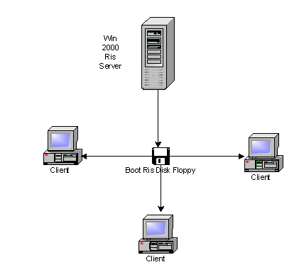 Nhiệm vụ vụ của RIS là cho phép chúng ta lấy một PC (Persional Computer ) với một đĩa cứng trống , gắn PC vào mạng của doanh nghiệp , đặt một đĩa mềm do RIS tạo ra vào ổ đĩa A: của pc đó . Chương trình trên đĩa mềm này đủ thông minh để lấy một địa chỉ IP cho PC đó , rồi tìm ra một máy Active Directory Domain Controller và hỏi thăm máy đó là cần tìm một RIS Server ở đâu . Một khi PC đó tìm ra RIS Server rồi , nó có thể bắt đầu nạp một hệ thống hình ảnh cụ thể nào đó để PC đó trở nên sử dụng được (nghĩa là có đầy đủ hệ điều hành và các ứng dụng trên đó để hoạt động ).