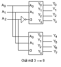 Dùng 2 mạch giải mã 2 đường sang 4 đường để thực hiện mạch giải mã 3 đường sang 8 đường (H 4.8)