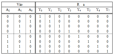 Quan sát bảng sự thật ta thấy: Trong các tổ hợp số 3 bit có 2 nhóm trong đó các bit thấp A1A0 hoàn toàn giống nhau, một nhóm có bit A2 = 0 và nhóm kia có A2 = 1. Như vậy ta có thể dùng ngã vào G cho bit A2 và mắc mạch như sau.