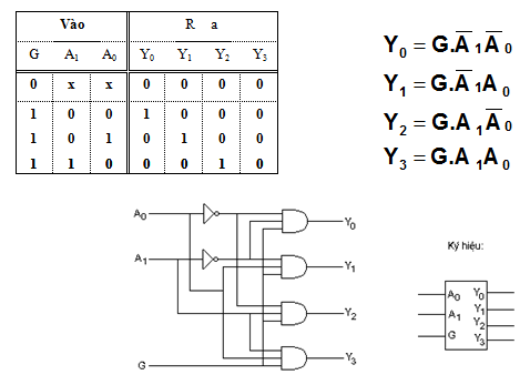Để đơn giản, ta xét mạch giải mã 2 đường sang 4 đường có các ngã vào và ra đều tác động cao .