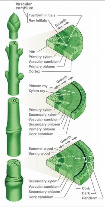 Quan sát cấu tạo thô đại trên mặt cắt ngang của thân cây, lỗ mạch thường có các dạng phân bố: