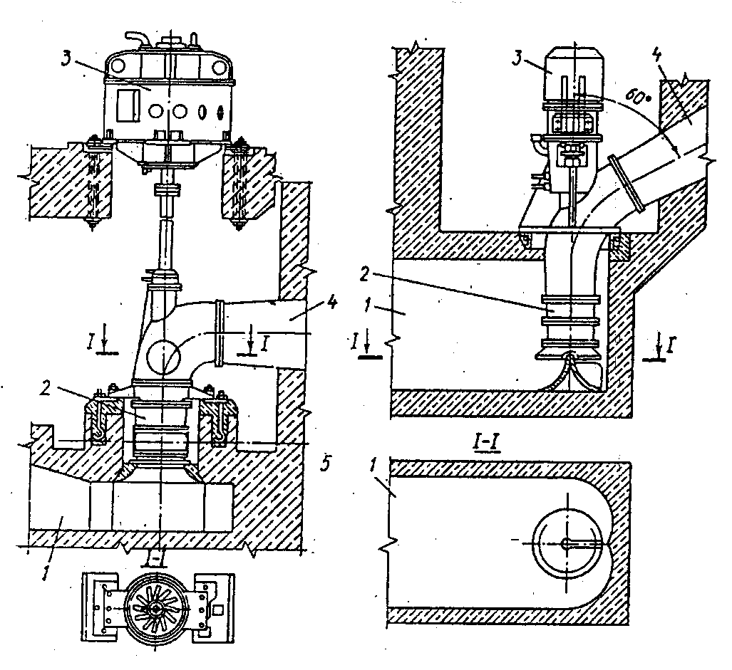 Tổ máy bơm hướng trục trục đứng gồm : bơm 2, động cơ điện 3, buồng dẫn nước 1, ống đẩy 4, ( xem hình vẽ Hình 2 - 9 ).