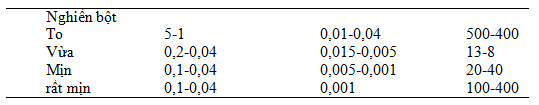 Bảng 3‑1. Kích thước hạt bột sau khi nghiền