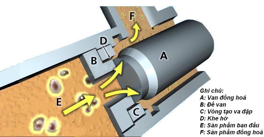 Dùng để tạo hệ nhũ tương từ 2 chất lỏng không tan vào nhau thí dụ như pha dầu bơ vào sữa trong công nghiệp làm sữa bột, hay tạo hệ huyền phù từ huyền phù thô ban đầu để có được huyền phù có kích thước hạt tương đối nhỏ và đồng nhất, thí dụ làm mịn nước ép trái cây tránh hiện tượng phân lớp trong đồ hộp.