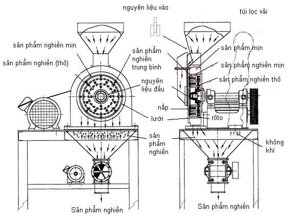 Số vòng quay của rôto rất lớn: 3000 - 6000 vòng/phút, do đó động năng va đập rất lớn, khả năng nghiền mịn tăng.