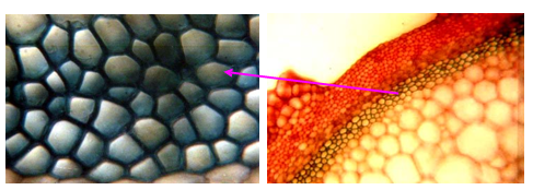 - Tế bào đá: Tế bào đá có vách hóa gỗ dày cứng, khoang tế bào chỉ còn rất hẹp. Vách có cấu trúc lớp dày lên thứ cấp, có các lỗ đơn, kép. Tế bào đá có ở hạt, quả, lá, thân, nằm ở các vị trì vỏ hay ruột với nhiều dạng khác nhau, như dạng hình đều nhau, phân nhánh, hình sao hay hình que...