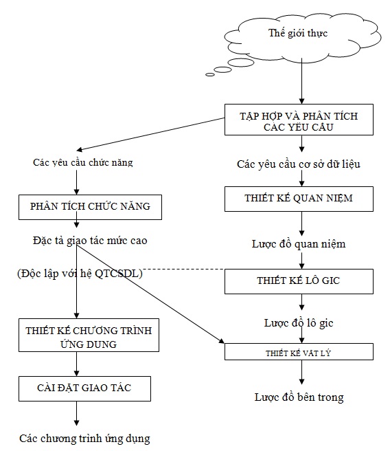 Quá trình thiết kế một cơ sở dữ liệu sử dụng mô hình quan niệm bậc cao được minh họa bằng hình dưới đây.