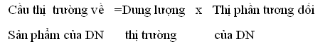 _ Trong trường hợp biết được dung lượng thị trường và thị phần tương đối của doanh nghiệp (với sản phẩm mà doanh nghiệp đã sản xuất và cung ứng),có thể tính :
