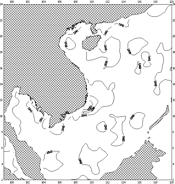 Xuất phát từ các trường nhiệt độ và độ muối trung bình tháng nhiều năm trên đây đã xác định tốc độ âm theo một trong những công thức thực nghiệm có độ chính xác cao và phổ dụng là công thức của Wilson W. D: