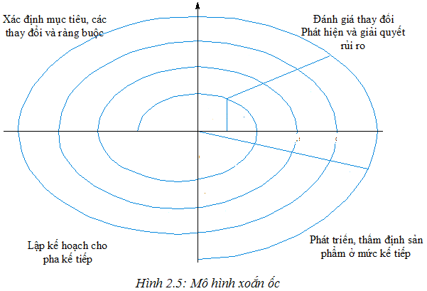 Trong mô hình xoắn ốc, quy trình phát triển phần mềm được biểu diễn như một vòng xoắn ốc. Các pha trong quy trình phát triển xoắn ốc bao gồm: