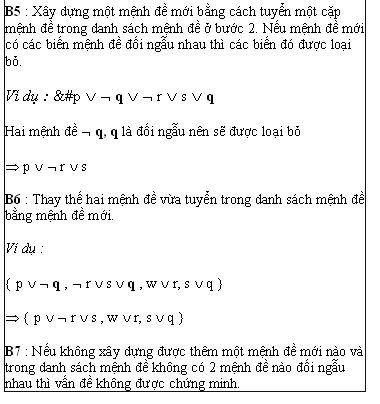 B5 : ⇒tuyển một cặp mệnh đề (chọn hai mệnh đề có biến đối ngẫu). Chọn hai mệnh đề đầu :