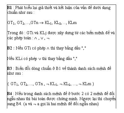 MỘT SỐ THUẬT GIẢI LIÊN QUAN ĐẾN LOGIC MỆNH ĐỀ