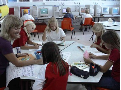 Trong trường Trung học cơ sở, không có chuông reo báo hiệu giờ học, học sinh tự động vào lớp học, vào làm việc theo nhóm. Đôi khi cũng làm việc cá thể. Thầy giáo hiếm khi bắt đầu buổi học bằng cách đứng trước lớp nói với học sinh, mà thường ngồi trong một nhóm nào đó với học sinh để bắt đầu một đồ án.
