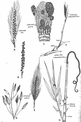 Giống này có hơn 400 loài ký sinh trên thực vật và hầu hết thuộc họ Graminae và Cyperaceae trong đó có nhiều cây lượng thực quan trọng; Triệu chứng thể hiện rất rỏ là chúng gây ra bệnh MUỘI THAN trên hột với những bào tử than trong một cái bọc có vỏ mỏng và khi gió thổi mạnh thì bọc vở ra phóng thích bào tử vào trong không khí (hình 5.8).