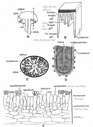 - Lớp Hymenomycetes : có bào đãm và tiêu biều là giống Agaricus và Volvariella