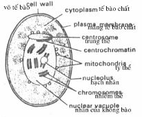 Nhân nấm men (hình 4.4) có phần trên là trung thể (centrosome) và centrochrometin và phần đáy của nhân có thêm không bào (vacuole), bên trong chứa 6 cặp nhiễm sắc thể (NST) và bên ngoài màng nhân có nhiều ti thể bám quanh.