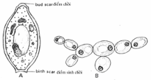 Sinh sản vô tính ở nấm men thường gặp nhất là nẩy chồi (hình 4.5), theo Hartwell (1974) khi một chồi hoàn chỉnh sẽ phát triển ngay nơi ở đó chồi sẽ nối liền với tế bào mẹ (bud scar) và khi chồi rời ra tế bào mẹ gọi là điểm sinh sản (birth scar)(hình 4.6).