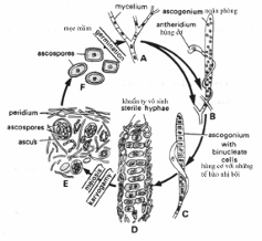 Hai giao tử tiếp xúc với nhau, nhân đực từ hùng khí thông qua ống dẩn tới túi noãn (ascogium) và kết hợp với nhân cái ở đây nhưng không có sự hoà lẩn nhân và nhân , sự bắt cặp hai nhân gọi là nhân kép (dikaryons)(hình 4.2A).