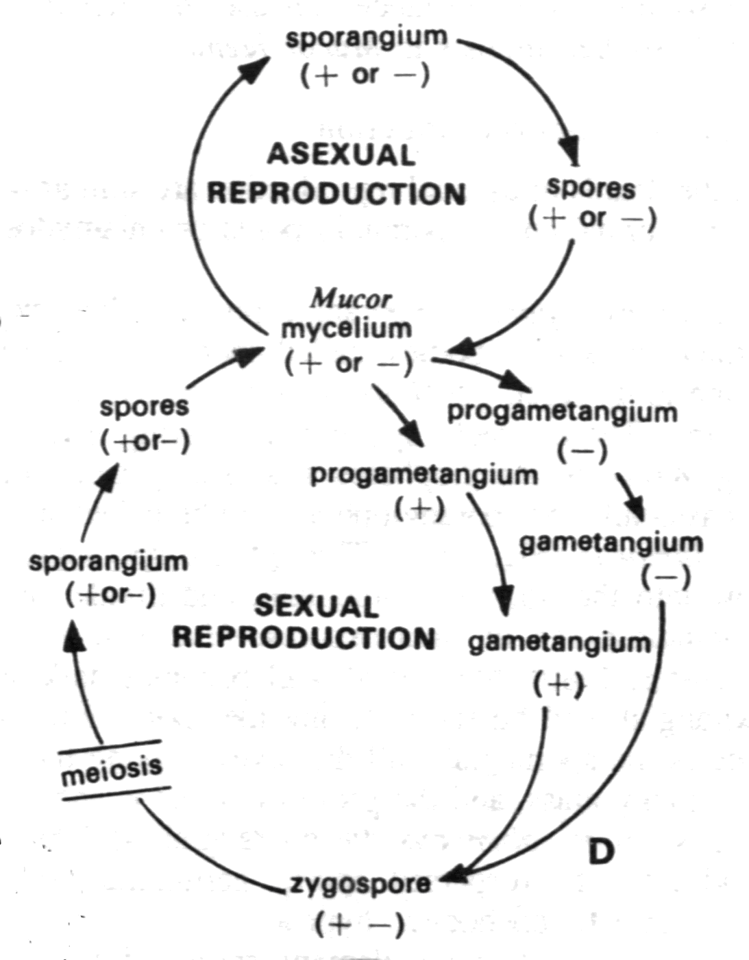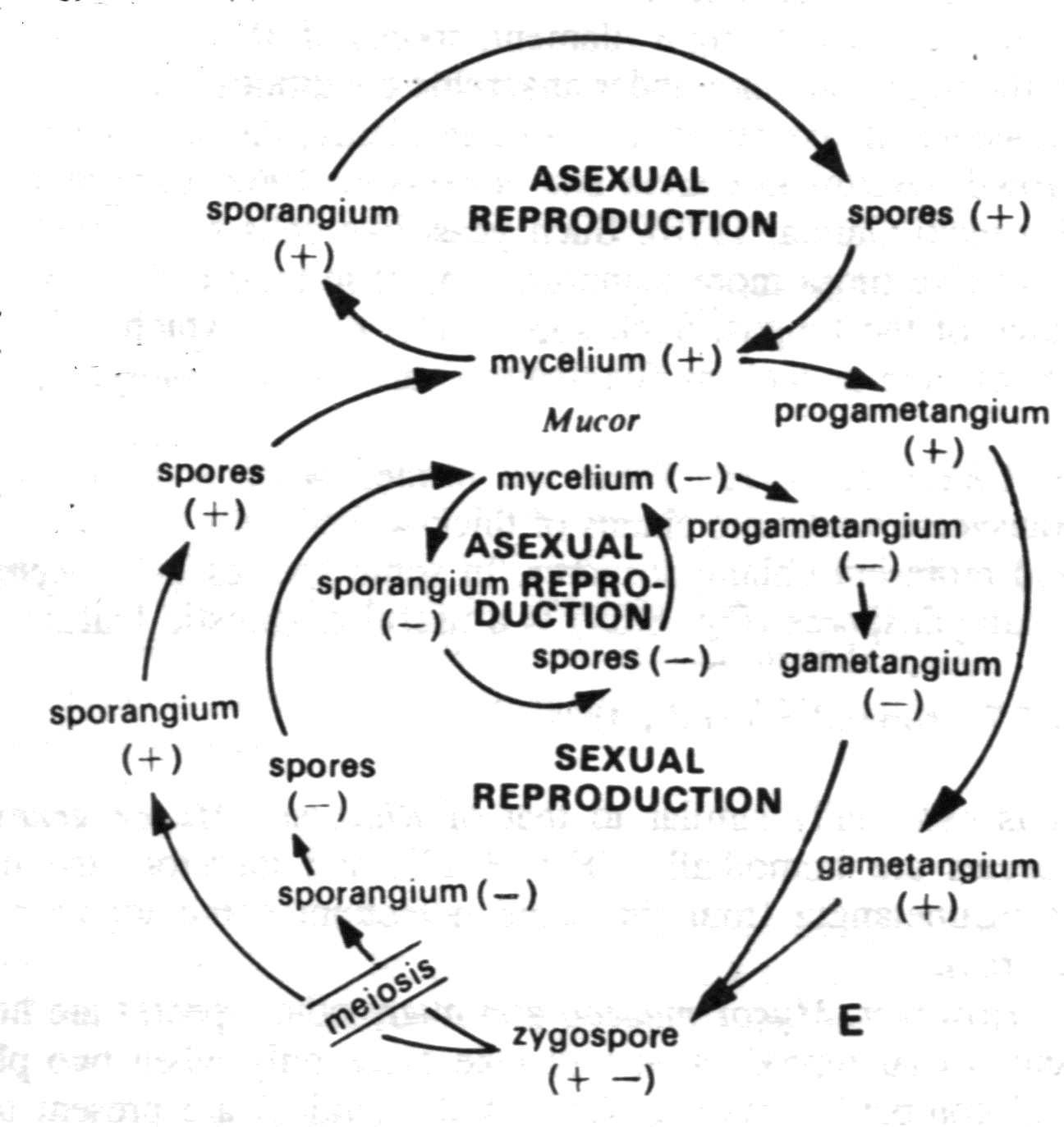 Trong sinh sản hữu tính, Mucor có những đặc điểm chung với Rhizopus, M.genevensis và nhiều loài khác là những loài đồng tán (tất cả sinh ra từ một khuẩn ty và thành lập bào tử tiếp hợp)(Hình 3.8), tuy nhiên, M. mucedo và những loài khác lại là dị tán (hình 3.9)