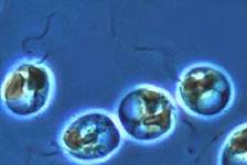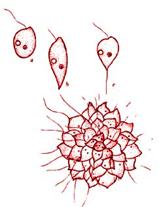 - Phân cắt tế bào: đây là phương pháp phổ biến nhất. Khi đó nội chất phân đôi, hai mảnh vỏ tách ta kềm theo một nửa nội chất, sau đó tự tổng hợp nên vỏ thứ hai. Các tê bào ở các thế hệ sau nhỏ hơi hai thế hệ đầu.