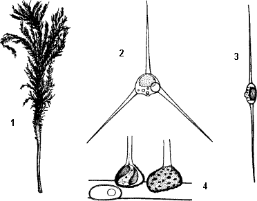 1 Hydrurus foetidus, 2 Bitrichia danubiensis, 3 Bitrichia longispina,4 Lagynion Scherffelii