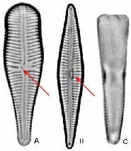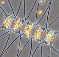 1 Tabellaria fenestrata, 2 Meridion circulare, 3 Diatoma vulgare,