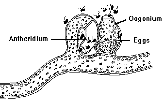 Autheridium- Túi đực; Oogonium- Túi cái; Eggs- Các noãn cầu