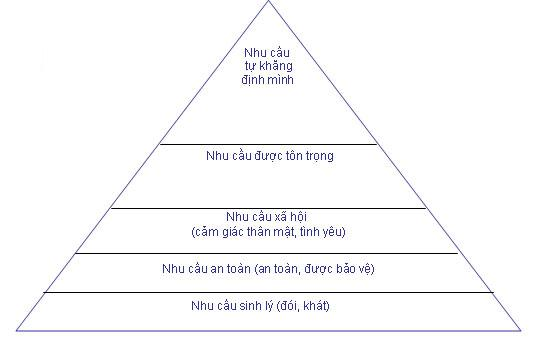 Lý thuyết động cơ của Maslow. Abraham Maslow đã tìm cách giải thích tại sao những thời điểm khác nhau, người ta lại bị thôi thúc bởi những nhu cầu khác nhau. Tại sao có người đã dành ra nhiều thời gian và sức lực để đảm bảo an toàn cá nhân và có người lại cố gắng giành được sự kính trọng của người xung quanh? Ông cho rằng nhu cầu của con người được sắp xếp trật tự theo thứ bậc, từ cấp thiết nhất đến ít cấp thiết nhất. Thứ bậc nhu cầu do Maslow đưa ra được trình bày trong H.4-3. Theo thứ tự tầm quan trọng các nhu cầu đó được sắp xếp như sau: Những nhu cầu sinh lý, những nhu cầu an toàn, những nhu cầu xã hội, những nhu cầu được tôn trọng và những nhu cầu tự khẳng định mình. Con người sẽ cố gắng thỏa mãn trước hết là những nhu cầu quan trọng nhất. Khi người ta đã thoả mãn được một nhu cầu quan trọng nào đó thì nó sẽ không còn là động cơ hiện thời nữa, và người ta lại cố gắng thỏa mãn nhu cầu quan trọng nhất tiếp theo.