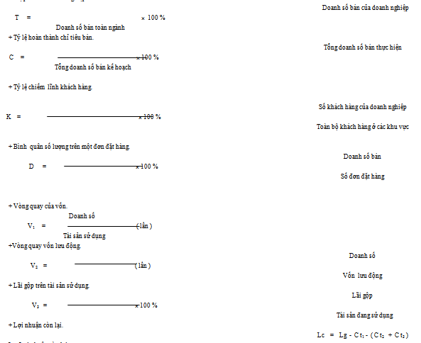Ngoài ra còn có thể sử dụng chỉ tiêu như: Doanh số bán hàng, chi phí bán hàng, số đơn hàng...