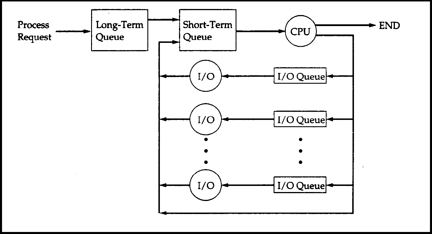 - Queues are simply lists of jobs that are waiting for some type of service (e.g., CPU cycles, I/ etc.). Once job has been admitted into the system by the high-level scheduler, it is allocated its portion of memory for its program and data requirements